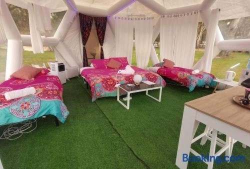 Situated in Comaum in the South Australia region, Taj Mahal upgraded Hex bubble features a garden. The property has garden views. Outdoor seating is also available at the luxury tent. Towels and bed linen are available in the luxury tent.