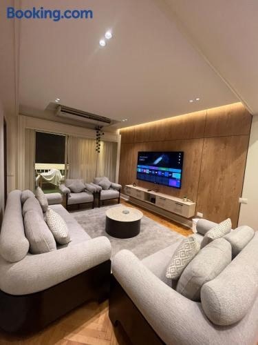 Featuring sea views, Om Kalthom Zamalek Apartment offers accommodation with a terrace and a balcony, around 3.6 km from The Egyptian Museum. The property is around 4.4 km from Cairo Tower, 6.1 km from Al-Azhar Mosque and 6.5 km from El Hussien...