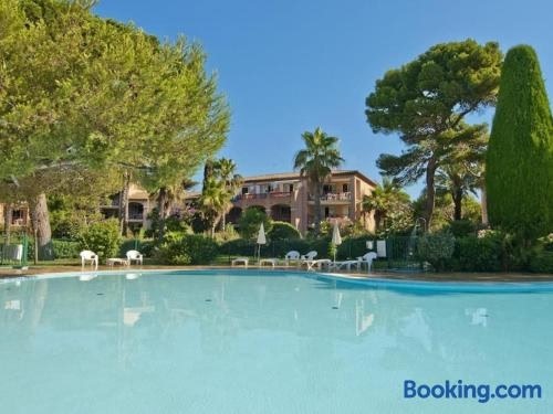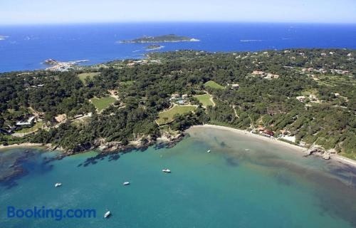 Superbe appartement 50M de la plage en bord de mer享有池景,配备季节性室外泳池、花园和私家海滩,距离巴丁普雷斯奎尔吉恩斯海滩(Badine Presqu'ile Giens)约有几步路。这家海滨住宿的客人可以使用露台、乒乓球桌、免费私人停车位和免费WiFi。 这家空调公寓配有1间卧室、起居室、带冰箱和咖啡机的设施齐全的厨房以及1间带浴缸和 吹风机的浴室。这家公寓也配有休息区和1间浴室。 这家公寓提供自行车租赁服务。客人可以在附近体验浮潜。 Superbe appartement 50M de la plage en bord de mer距离土伦火车站有28公里,距离土伦欧米茄展览中心有28公里。土伦-耶尔机场距离住宿有9公里。