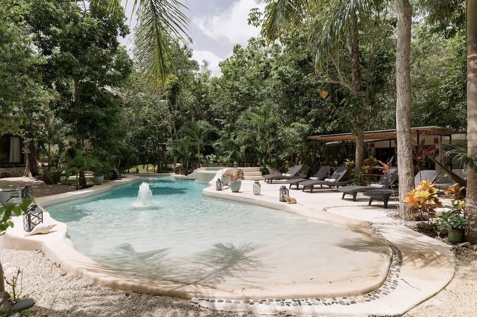 Cachito de Cielo Luxury Jungle Lodge in Tulum provides adults-only accommodation with an outdoor swimming pool and a garden. The property features pool and garden views, and is 8.2 km from Tulum Archeological Site.