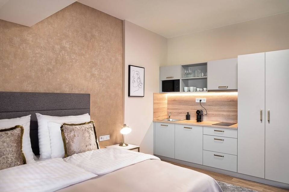 Theatre 9 Apartments by Adrez provides accommodation within 700 metres of the centre of Prague, with free WiFi, and a kitchenette with a microwave, a fridge and a stovetop. This 4-star apartment offers a lift. The apartment features family rooms.