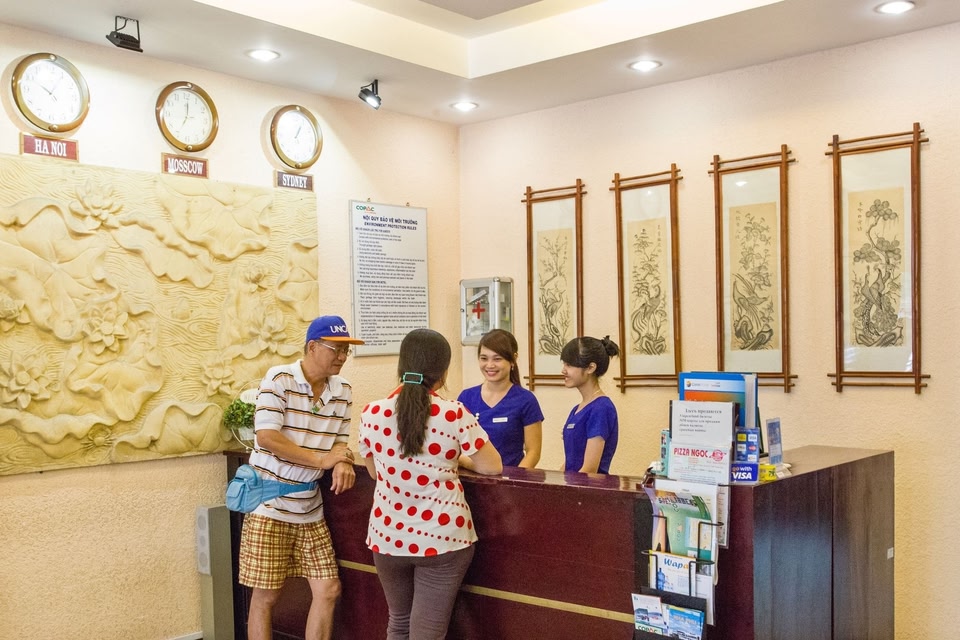 With a stay at Copac Hotel in Nha Trang, you'll be minutes from Nha Trang Night Market and Tram Huong Tower. This hotel is within close proximity of April 2 Square and Nha Trang Cathedral.Rooms Make yourself at home in one of the 59 air-conditioned rooms featuring minibars. Complimentary wireless Internet access keeps you connected, and satellite programming is available for your entertainment. Private bathrooms with showers feature complimentary toiletries and hair dryers. Conveniences include phones, as well as safes and desks. Pamper yourself with onsite massages or enjoy recreation amenities such as bicycles to rent. This hotel also features complimentary wireless Internet access and tour/ticket assistance.Dining Satisfy your appetite at the hotel's restaurant, which serves breakfast, lunch, and dinner, or stay in and take advantage of 24-hour room service.Business, Other Amenities Featured amenities include a business center, a computer station, and dry cleaning/laundry services. Planning an event in Nha Trang? This hotel has facilities measuring 1399 square feet (130 square meters), including a meeting room. For a surcharge, guests may use a roundtrip airport shuttle (available on request) and a train station pick-up service.