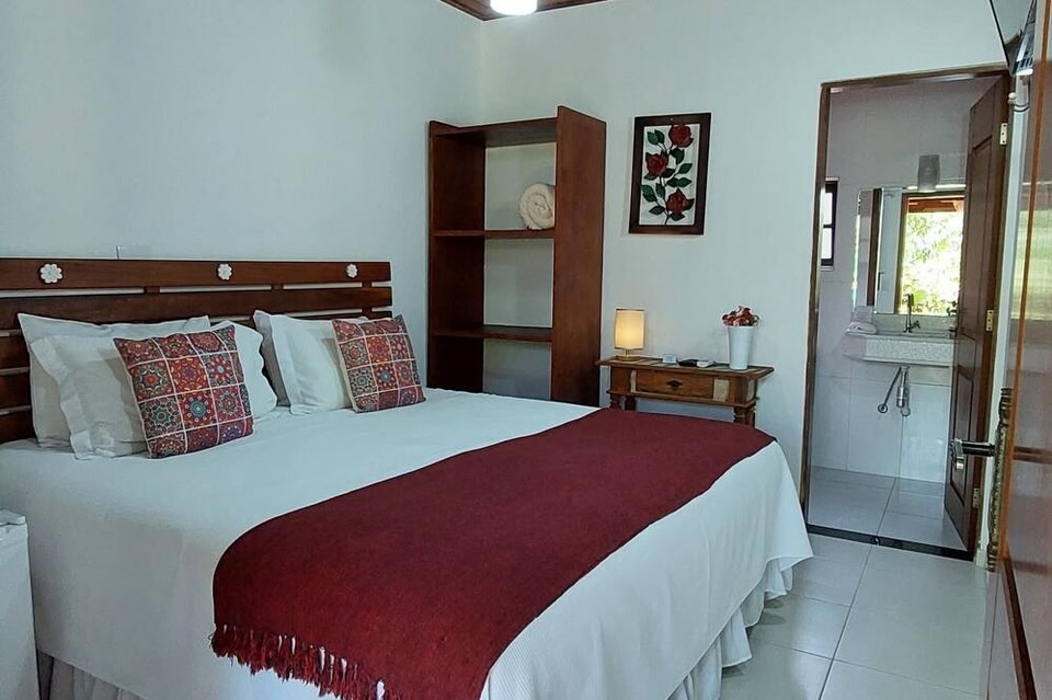Boasting a swimming pool with sun terrace, Pousada Canoa Caiçara Ilhabela offers practical accommodation surrounded by gardens. Facilities for rooms at Canoa Caiçara include air conditioning, a minibar, a TV and private bathroom with a hot shower.