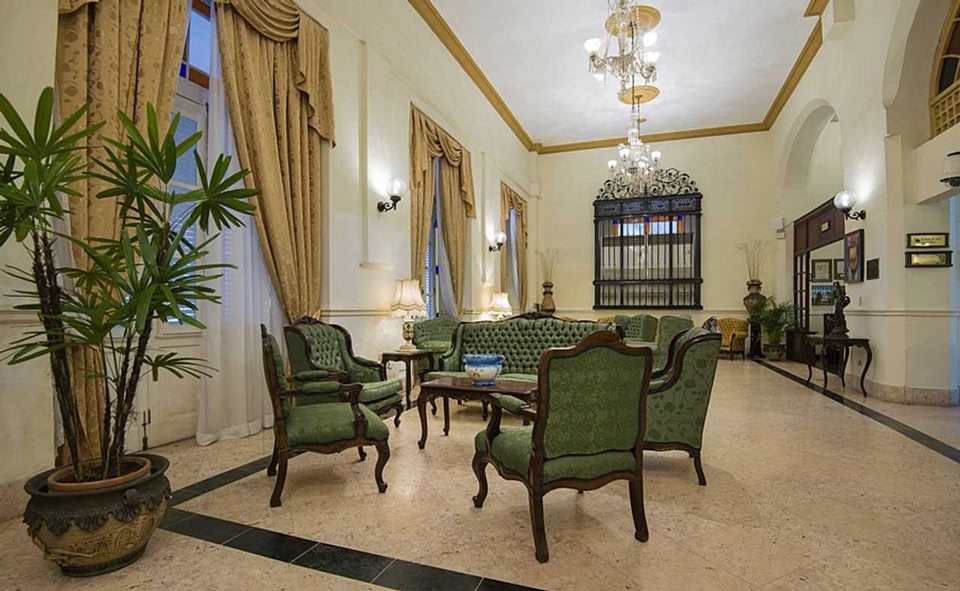The Inglaterra opened in 1875 and has been one of the preferred hotels in the heart of downtown Havana ever since. Famous past guests include José Martí and Anna Pavlova. The Inglaterra's animated and dynamic sidewalk café, the Gran Café el Louvre, has hosted musicians, travelers, poets, professors and visitors of all stripes for over a century. Pull up one of the cast iron chairs to linger for an hour (or three) listening to live music and watching the kinetic street scene unfold. While Inglaterra means England (for those who didn't know), it's rather a fusion of several cultural influences. Consider the restaurant El Colonial, (where breakfast is served) opposite the horseshoe-shaped reception area, with its neoclassical style. On the left, the bar-café La Sevillana, is another inviting spot. This whole section is attractively paneled with ceramic tiles from Seville in rich patterns and colors, complemented by ornately carved archways and molding. The Inglaterra's rooftop terrace, featuring a bar/grill, is consistently ranked as a top Havana experience. Enjoy the Jacuzzi and sun beds in the solarium or have some cocktails accompanied by live music.