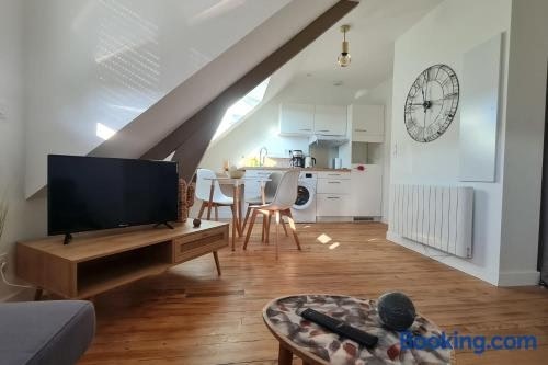 Le Jaures 5 - T2 - Dernier Etage位于埃讷邦,享有市景,距离罗里安特火车站有9.2公里,距离洛里昂足球俱乐部有10公里。住宿距离洛里昂展览中心有6公里,提供24小时前台。 这家公寓配有1间卧室、起居室、带冰箱和咖啡机的设施齐全的厨房以及1间带淋浴设施的浴室。 这家公寓也提供休息区和1间浴室。 这家公寓距离普鲁哈内尔火车站有28公里,距离基伯龙火车站有42公里。洛里昂南布列塔尼机场距离住宿有15公里。