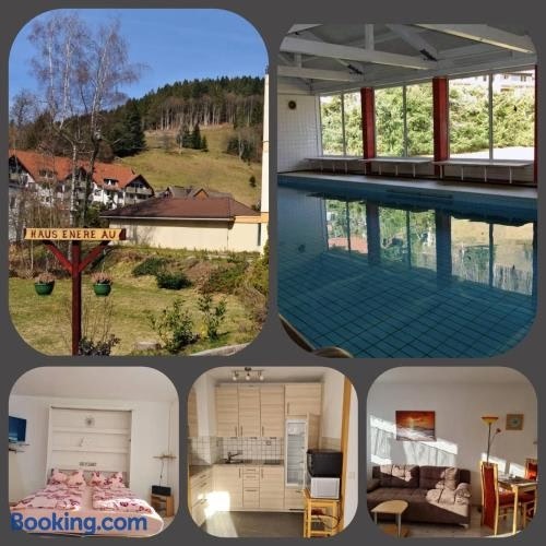 Haus Enere Au FeWo Antonia und FeWo Milan is situated in Todtmoos and has a private pool and garden views. This property offers access to a balcony, table tennis, free private parking and free WiFi. The apartment features family rooms.
