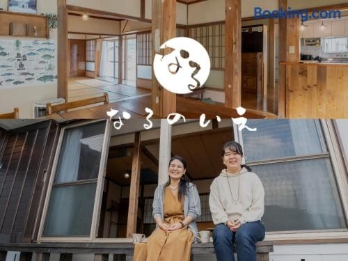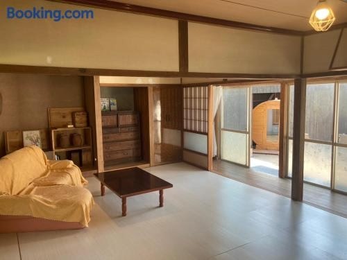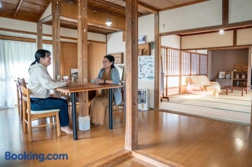 なるのいえ港から徒歩1分サウナと広々リビングの宿byしまいろ坐落于Ura,距离树托加岛海滩(Shutogashima Beach)仅有1.8公里,配备花园、露台和免费WiFi。 这家空调度假屋配有2间独立卧室、起居室、设施齐全的厨房以及1间浴室。这家度假屋也配备1间浴室。 这家度假屋的客人可以使用桑拿浴室。 福江机场距离住宿有92公里。