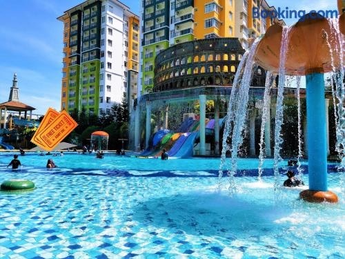 HomeStay at Melaka # Free WiFi # Water ThemePark Tickets位于马六甲,享有山景,配备户外游泳池、健身中心、花园、共用休息室和露台。住宿配备免费WiFi,内部提供私人停车位。 这家公寓享有池景,为客人提供阳台、休息区、卫星频道平板电视、带洗碗机和迷你吧的设施齐全的小厨房以及带淋浴设施和免费洗浴用品的私人浴室。 HomeStay at Melaka # Free WiFi # Water ThemePark Tickets的餐厅专供马来风味美食。. ..