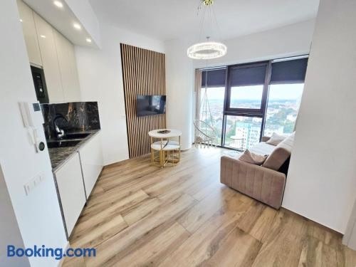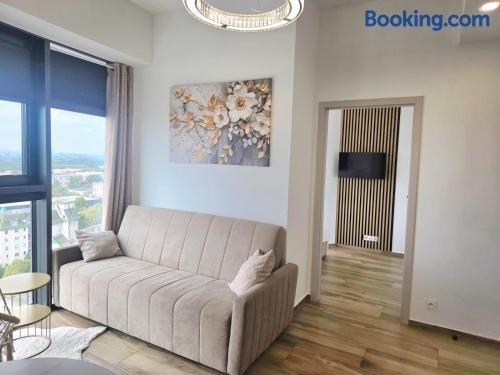 Hanza Tower AJP Glamour apartment high floor位置很好,位于什切青中心,靠近什切青大学和Szczecin-Niebuszewo Train Station。这家住宿提供私人泳池、免费WiFi和免费私人停车位。 这家公寓提供露台,享有市景,拥有1间卧室、起居室、平板电视、带冰箱和洗碗机的设施齐全的厨房以及1间带淋浴设施的浴室。这家空调公寓还配备休息区、洗衣机以及1间带吹风机的浴室。 这家公寓的康体区提供室内泳池、桑拿房和热水浴池。 Hanza Tower. ..