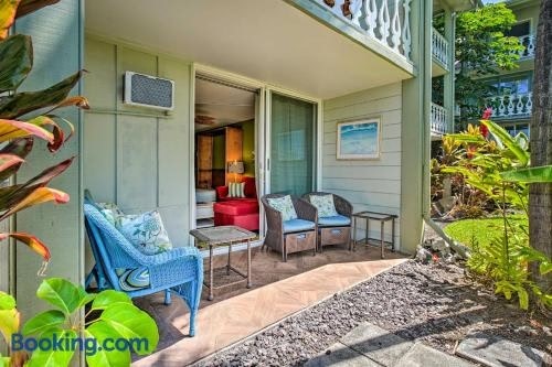 Oceanfront Kailua-Kona Islander Studio with Lanai!坐落于科纳,配备免费WiFi、空调、花园和露台,距离魔术沙滩(Magic Sands Beach)有几步路,距离凯鲁考火山岛国家历史公园有6.